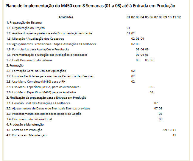 O Plano a seguir apresentado sintetiza o que se tem de fazer para possibilitar a entrada em Produção da nossa Solução para a Avaliação do Desempeno de RH.